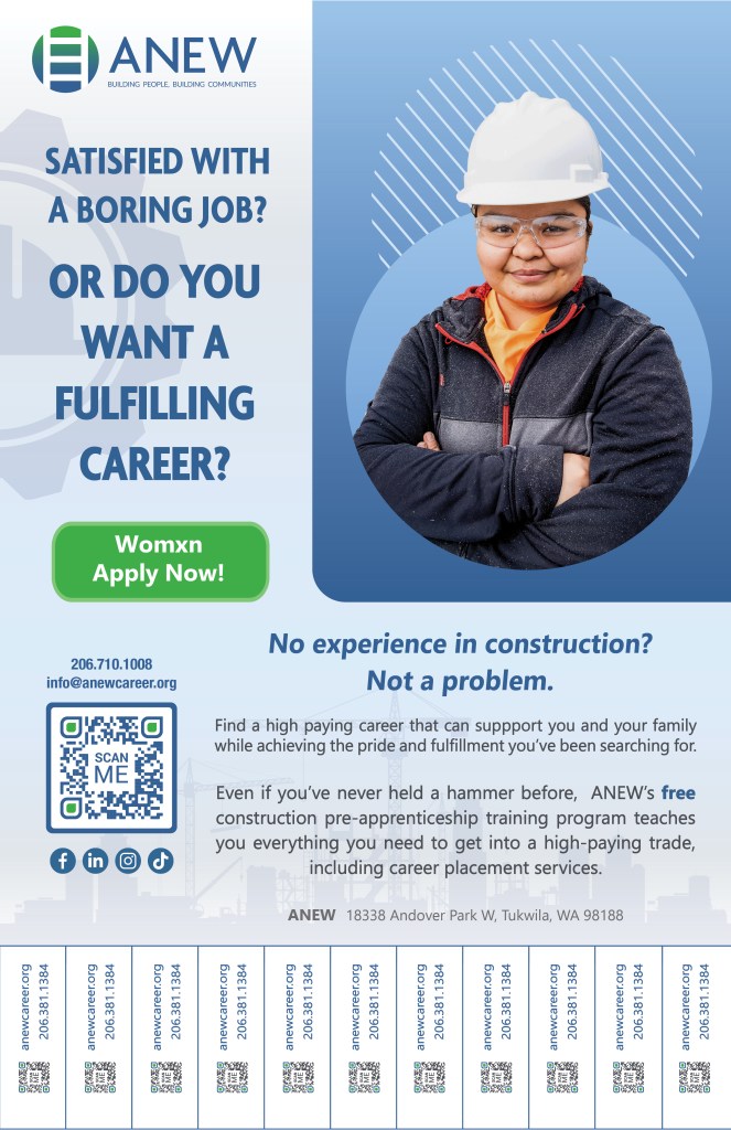 Recruitment Poster for ANEW’s Pre-Apprenticeship Training Program
